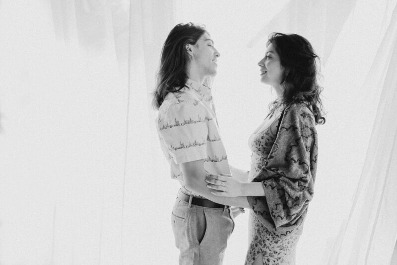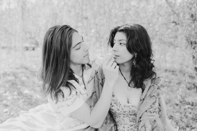 A smoky spring morning with these two love birds in Julien's backyard oasis. Jules and Jacky set up a blanket under the weeping willow tree and lit a joint. Their relationship radiates with intimate warmth, and it's a joy to be in their presence and photograph their love for one another. The further down you scroll, the more you'll fall in love. This is one of my favorite shoots to date. Enjoy—